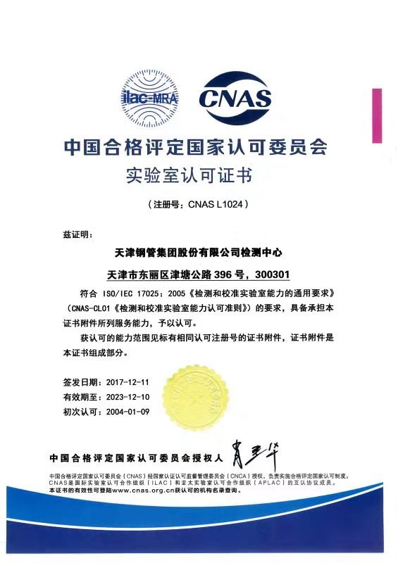 CNAS證書就是企業出具的材質單得到國家評定認可,檢測設備,以及檢測結果完全標準的一個證明,這個知識可以提醒你所買的無縫鋼管是不是廠家出局的證明有效,和屬實的材料證明,天津鋼管集團股份有限公司的天津大無縫鋼管廠出具的材質單完全符合材料的各項元素化驗。天津無縫鋼管廠報道www.m.gangkouqizhong.com